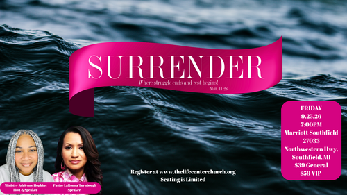 Hey Ladies, click the link below to register for SURRENDER: Where struggle ends and rest begins!
